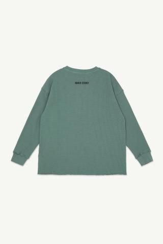 ワッフルTシャツは、独特のワッフル風合いを持つ柔らかなオーガニックコットンを使用しています。リブ編みのネックと袖口が特徴の長袖Tシャツは、ゆったりとしたオーバーサイズフィットです。