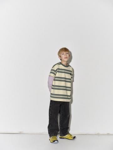 mainstoryのコレクションの特徴であるストライプは、最高品質の糸染めオーガニックコットンジャージで作られています。