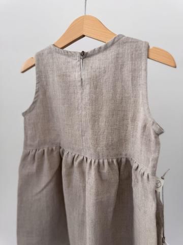 リネンドレス「マルワ」は、スリーブレスタイプ。女の子のための定番サマードレスです。ゆったりとしたフィット感は、ダンス、ジャンプ、ランニングに最適で、必要に応じてスタイリッシュに着こなすこともできます。両サイドにポケットが2つ付いているので、ちょっとしたお宝や大切なものを入れるのに最適です。後ろはボタンで開閉します。リネン100%を使用。
