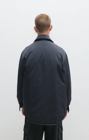 軽くて暖かい長袖の襟付きストレートジャケット。裾のサイドからのカーブデザインがポイントに。後ろの裾が長めのデザインになります。