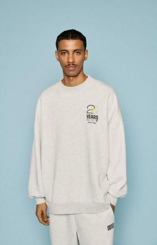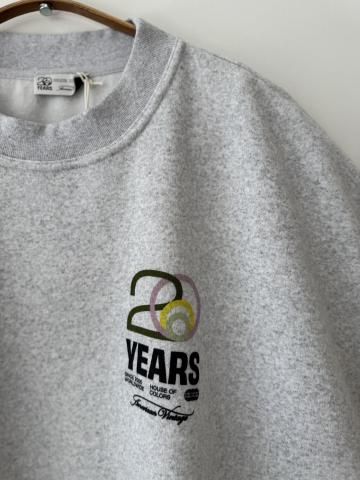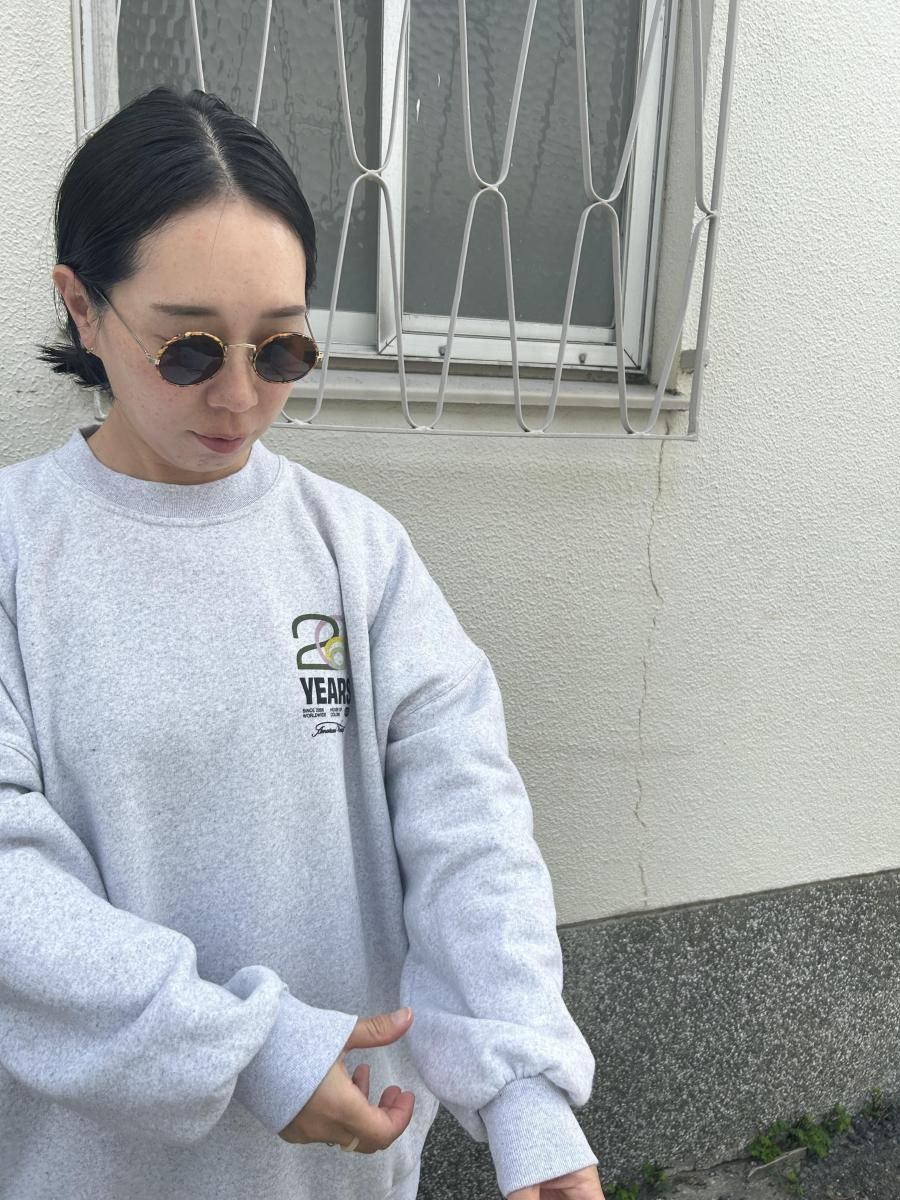 胸元には20周年ロゴとバックにはブランドネームが入ったカジュアルなスウェット。