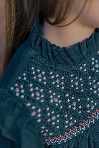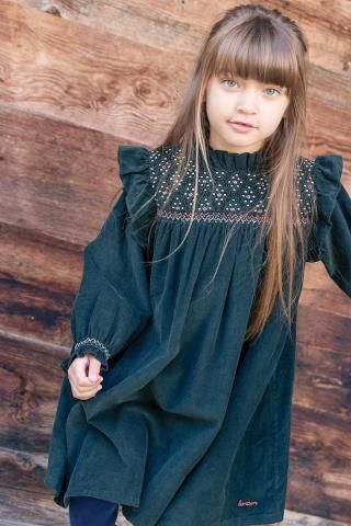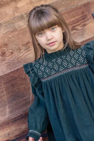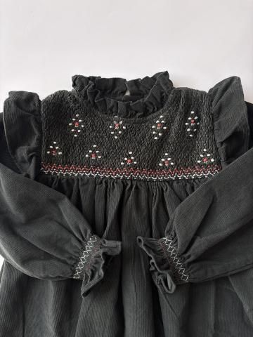 「Faroe Island」コレクションの長袖バブーシュカドレスは、まさに冒険への招待状!パフスリーブ、手刺繍のよだれかけ、フリルの襟が、フェロー諸島の魅惑的な風景を彷彿とさせます。探検の一日を楽しく過ごすのにぴったりで、アンクルブーツと帽子を合わせれば、シックで大胆な装いに。おしゃれを求める小さな冒険家にとって、マストハブアイテムです!