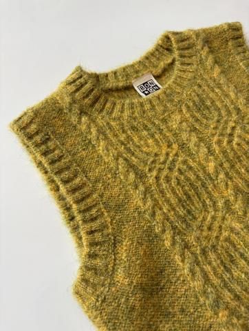 ステムグリーンのLuciaノースリーブセーターは、フェロー諸島への旅行にぴったり!ケーブルニットのフロントが、お子様の冒険心をくすぐるスタイリッシュさと快適さを兼ね備えています。涼しい日に冒険に出かけたい時にぴったりのセーターです。スカートやパンツと合わせて、シックで温かみのあるスタイルに。