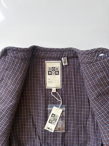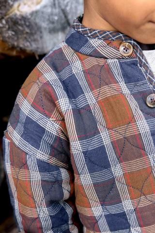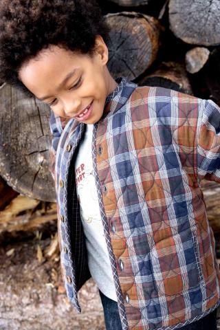 「New Barn」コレクションのモンタナジャケットは、ブラウンとブルーのチェック柄でワイルドウェストを征服する準備万端。ちょっとした冒険にぴったりのジャケットで、フロントはボタンで留めると、内側には小さなチェック柄が覗きます。ジーンズとバンダナを合わせれば、まさにモダンなカウボーイルックが完成します!