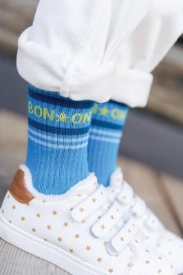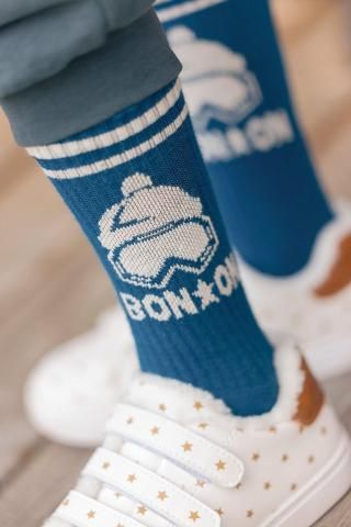 「ウィンター・テイルズ」コレクションのノルディックブルーソックス。小さな足を温める繭のように包み込みましょう。遊び心のあるこのソックスは、柔らかく快適なコットン混紡素材でつま先を暖かく包みます。冬らしい色合いで、歩くたびに北欧の魔法のような雰囲気を演出します。フランネルのパジャマや着心地の良いセットアップと合わせれば、雪の冒険に彩りを添えてくれます。