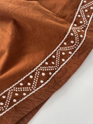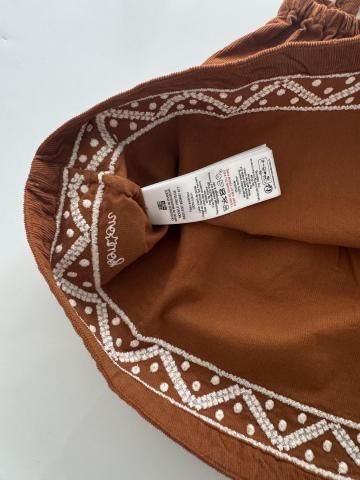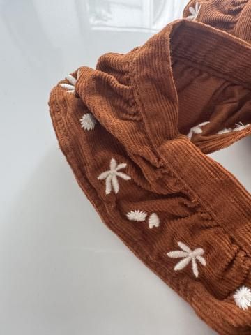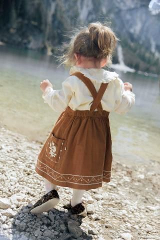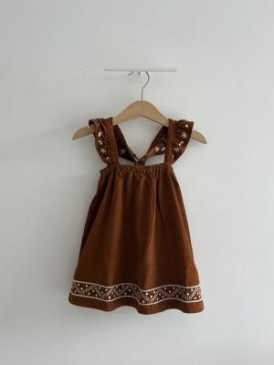 このドレスは、小さなお子様にとってまさに宝物!手刺繍のフリルストラップが、夢のような柔らかな感触を誘います。100%コットンのミニベルベットで仕立てられたこのドレスは、冒険心を掻き立てるお子様に比類なき快適さを提供します。フレアフィットが軽やかでひらひらとした印象を与えます。快適なシューズを合わせれば、優しく魅力的な装いに!