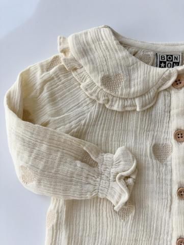 「ウィンター・テイルズ」コレクションのフィグブラウスは、小さな女の子にぴったり!ハートの刺繍とフリルの襟が、冬の魔法を添えてくれます。暖かい日にぴったりで、ベルベットのパンツと合わせれば、温かみのあるルックが完成します。快適さと可愛らしさを兼ね備えたこのブラウスは、ファッショニスタの小さな冬の冒険に、柔らかな雰囲気を添えてくれるでしょう。