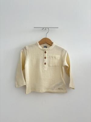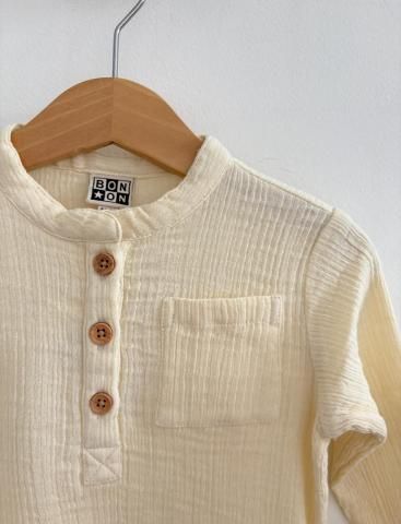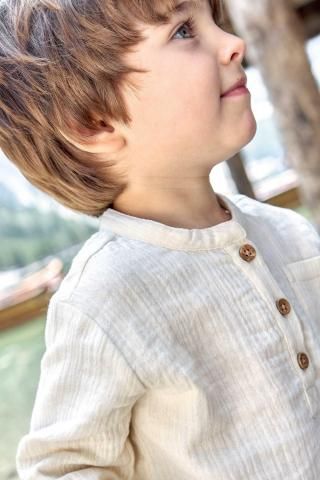 「Winter Tales」コレクションのリマシャツは、小さな冒険好きにぴったり!エクリュカラーのシャツは、コットン100%のダブルガーゼ素材で、心地よい着心地を実現。3つボタン留めとフロントポケットに刺繍されたボントンロゴが、スタイリッシュでありながら実用性も兼ね備えています。冬の日にぴったりで、コーデュロイパンツと合わせればシックで温かみのあるスタイルに。