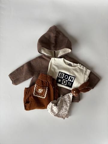 Bontonエクリュの長袖Tシャツは、ブラックのベロアでBontonロゴがあしらわれています。小さなカウボーイの雰囲気を添えます。100%コットン素材で、冒険に満ちた日々にぴったりの快適さとスタイリッシュなデザインを兼ね備えています。ジーンズやコーデュロイパンツと合わせれば、魅力的なウエスタンルックが完成します!