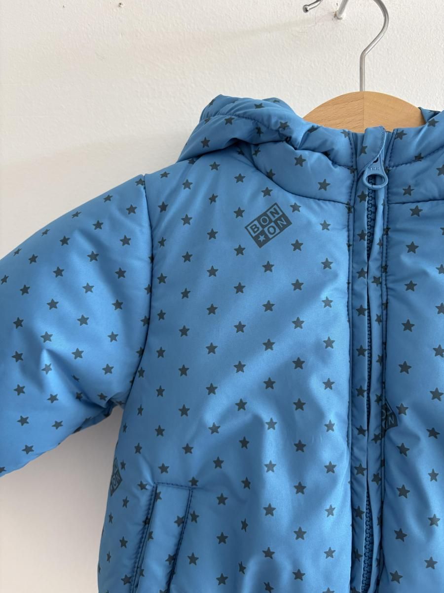 ブルーノルディックのアウターで、小さな冒険家と寒い冬の準備を!「ウィンターテイルズ」コレクションより、フード付きのこのアウターは、魔法の星が散りばめられ、日々を明るく彩ります。便利なジッパー開閉、小さな宝物を入れるポケットが2つ、そして袖口がタイトなデザインで、快適で保温性も抜群。サイズ調整と袖口の伸縮性により、快適な着心地で世界を静かに探検できます!