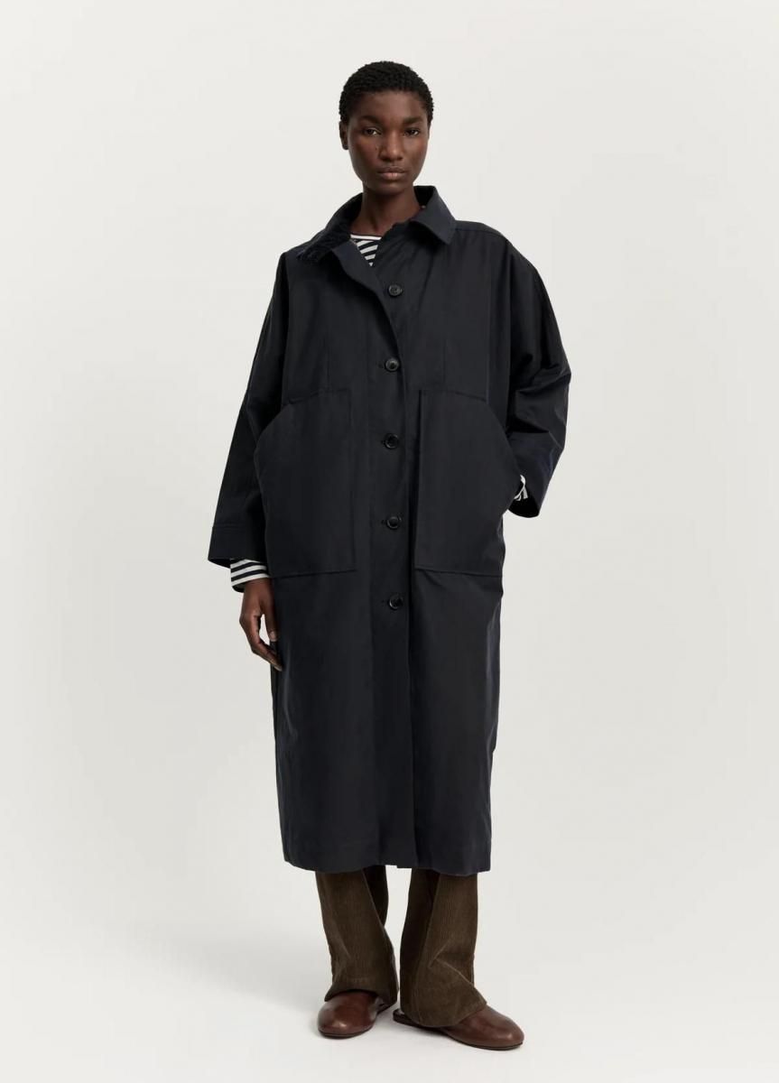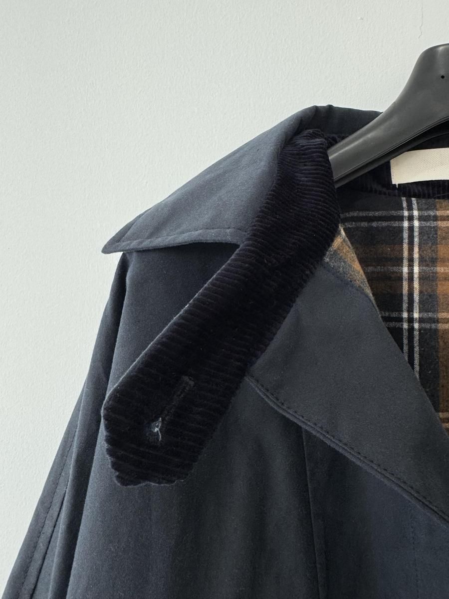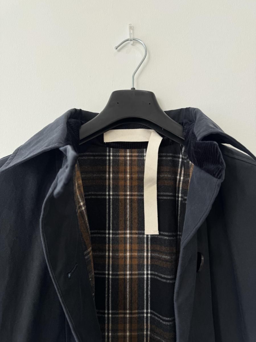 オーガニックコットンに天然コーティングを施したオイルスキンコート。ワークウェア風のシルエットで、ゆったりとしたフィット感を実現。ハンドメイドのホーンボタンと特徴的なチェック柄の裏地が特徴です。首周りとお袖一折がゴーデュロイになっていて、さりげないこだわりを体感いただけます。ジャケットはお届け時に天然オイルの香りがしますが、時間の経過とともに薄れていきます。これは、化学薬品を一切使用せず、認証オーガニックオリーブオイルで加工されているためです。