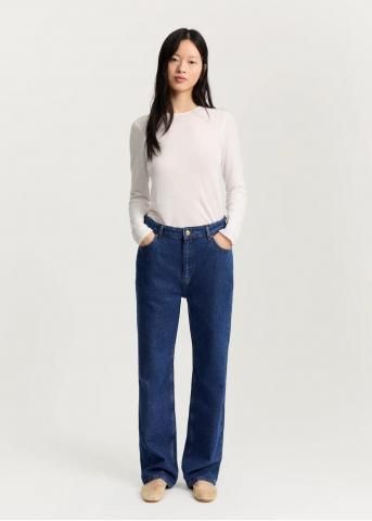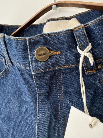 認証オーガニックコットンを使用した、タイムレスなジーンズ。クラシックな5ポケットシルエットで、ハイウエストとストレートレッグが特徴です。小さなフロントポケットのハンドステッチ、シグネチャーストラップ、そしてaiayuのロゴパッチなど、繊細なディテールが洗練された雰囲気を添えています。丈はゆったりとしており、ターンアップしてリラックスしたスタイルに仕上げるのもおすすめです。