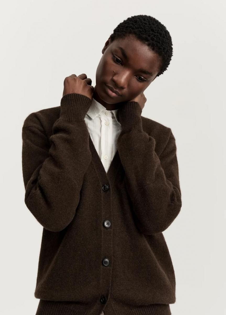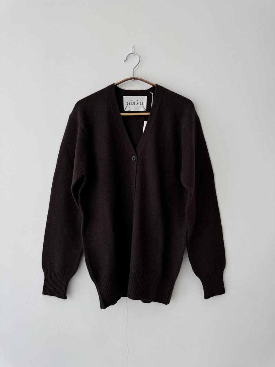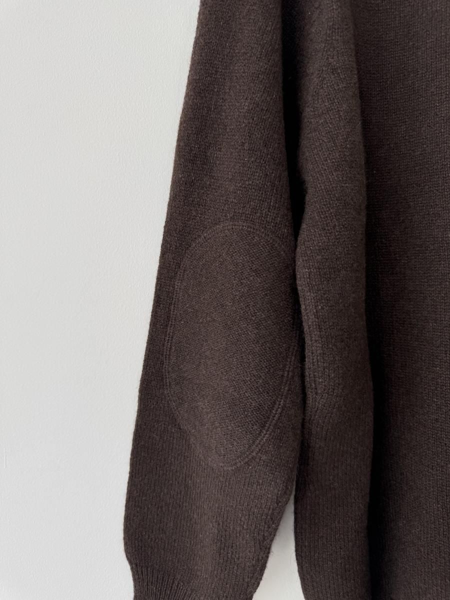 上質なヤクウールを使用した、なめらかで上質なニットカーディガン。クラシックなメンズウェアにインスパイアされたレギュラーフィットのデザイン。ハンドメイドのホーンボタンと、ネックとエルボーにあしらわれた装飾的なパッチが、細部までこだわった仕上がりです。
